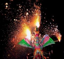 云南白族人过年时,有一种叫“放高升”的庆祝活动。所谓“放高升”就是用整棵的大竹子,在竹节里装上火药,点燃以后可以把整个大竹子崩上天空百十丈,成为名副其实的“高升”。有的地区的白族同胞与苗、壮族一样,从春节到元宵节,都在进行“抛绣球”活动。